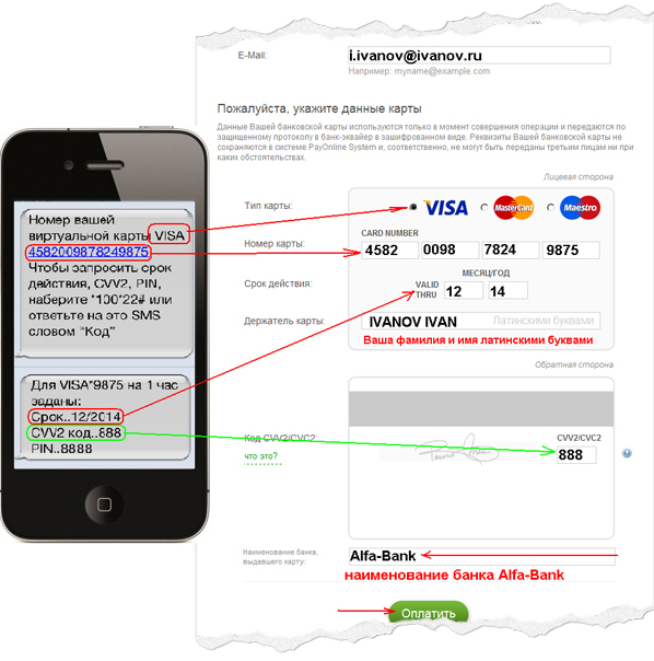 8 шаг: После получения всех необходимых данный для совершения платежа нажмите кнопку «Оплатить». |